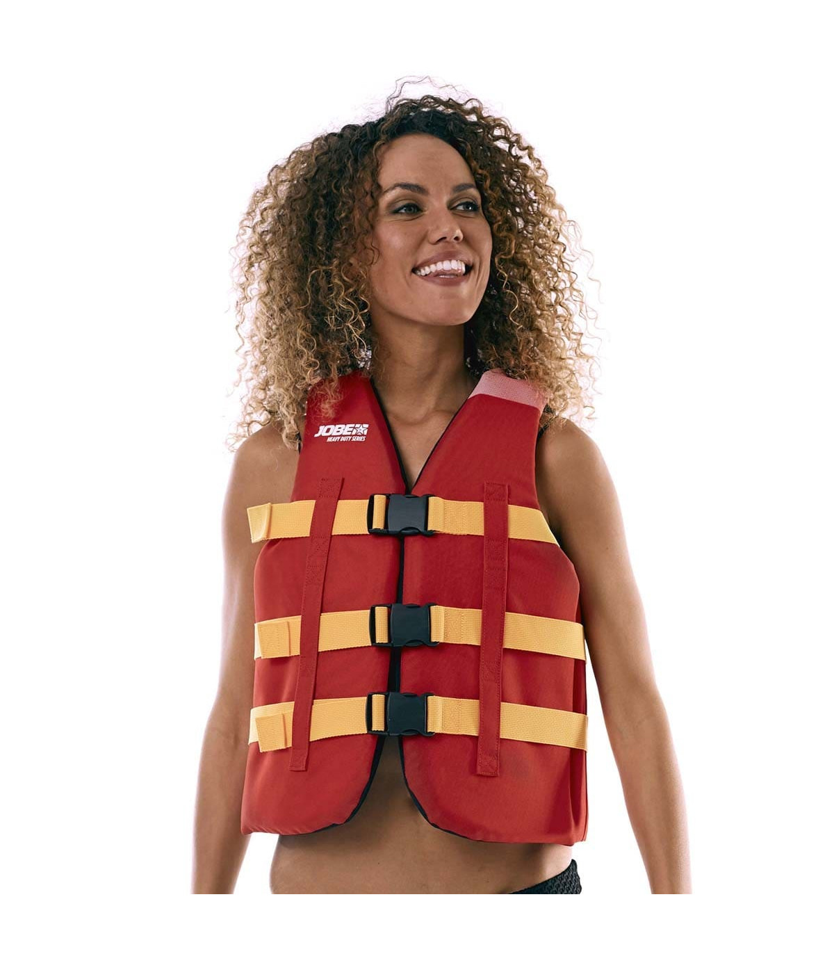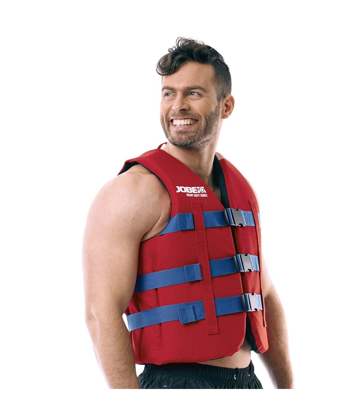 A perfect fit, safety, security and reliable material are the keywords to describe Jobe Heavy Duty vests. Jobe vests for commercial or rental purposes feel like a warm hug on the water. Investing in a proper-fitting vest enhances fun, comfort but more importantly: safety. To keep it easy: every strap-colour represents its own size. No matter if people just chill at the shore, attending a workshop or going out for a boat trip: a heavy duty vest keeps all hearts safe. This Jobe Heavy Duty Vest Red in engineered with lightweight PE-foam and strong & lightweight 600 denier nylon. A 50N nylon vest with minimum water absorption is suitable for rental purposes.