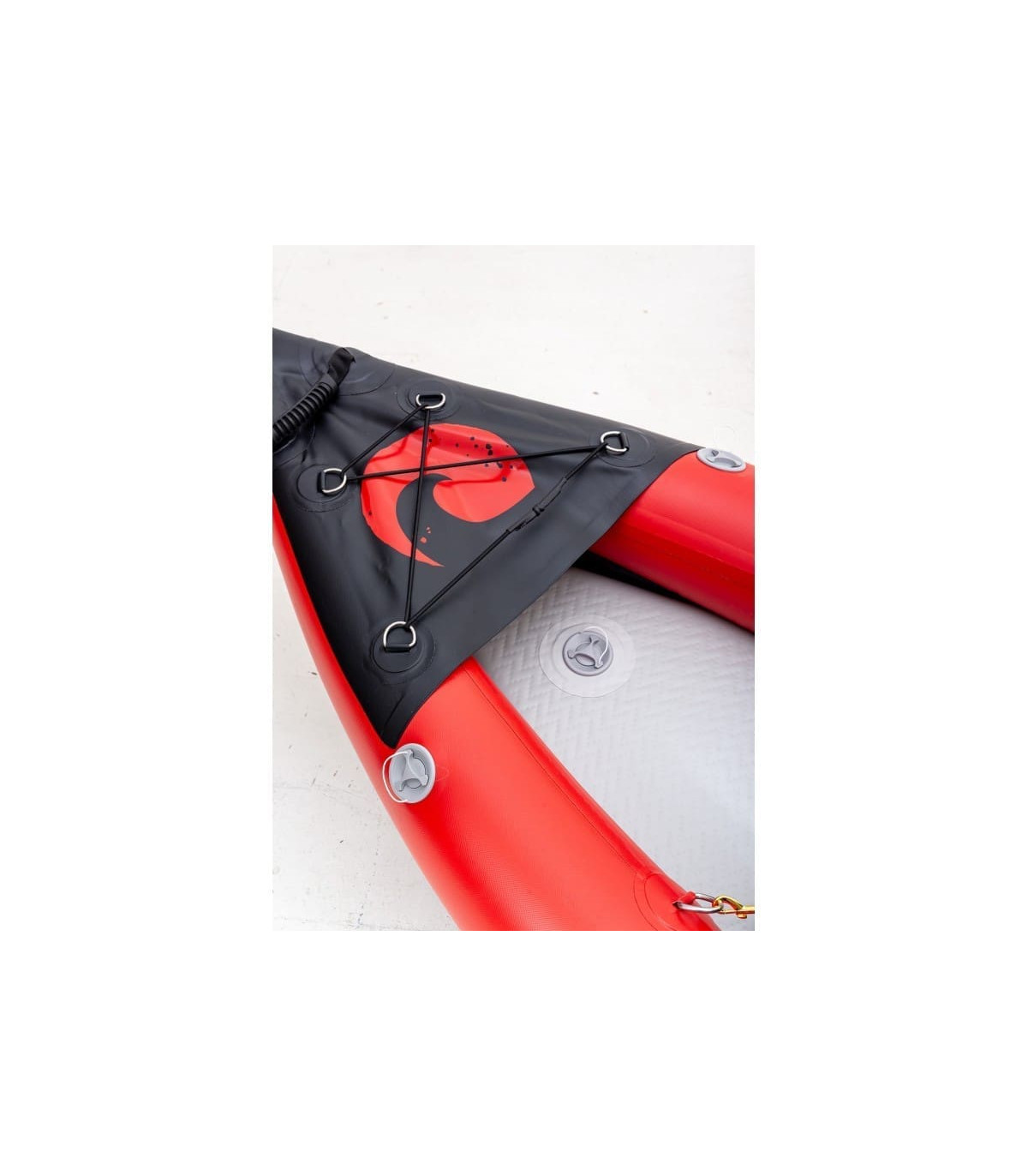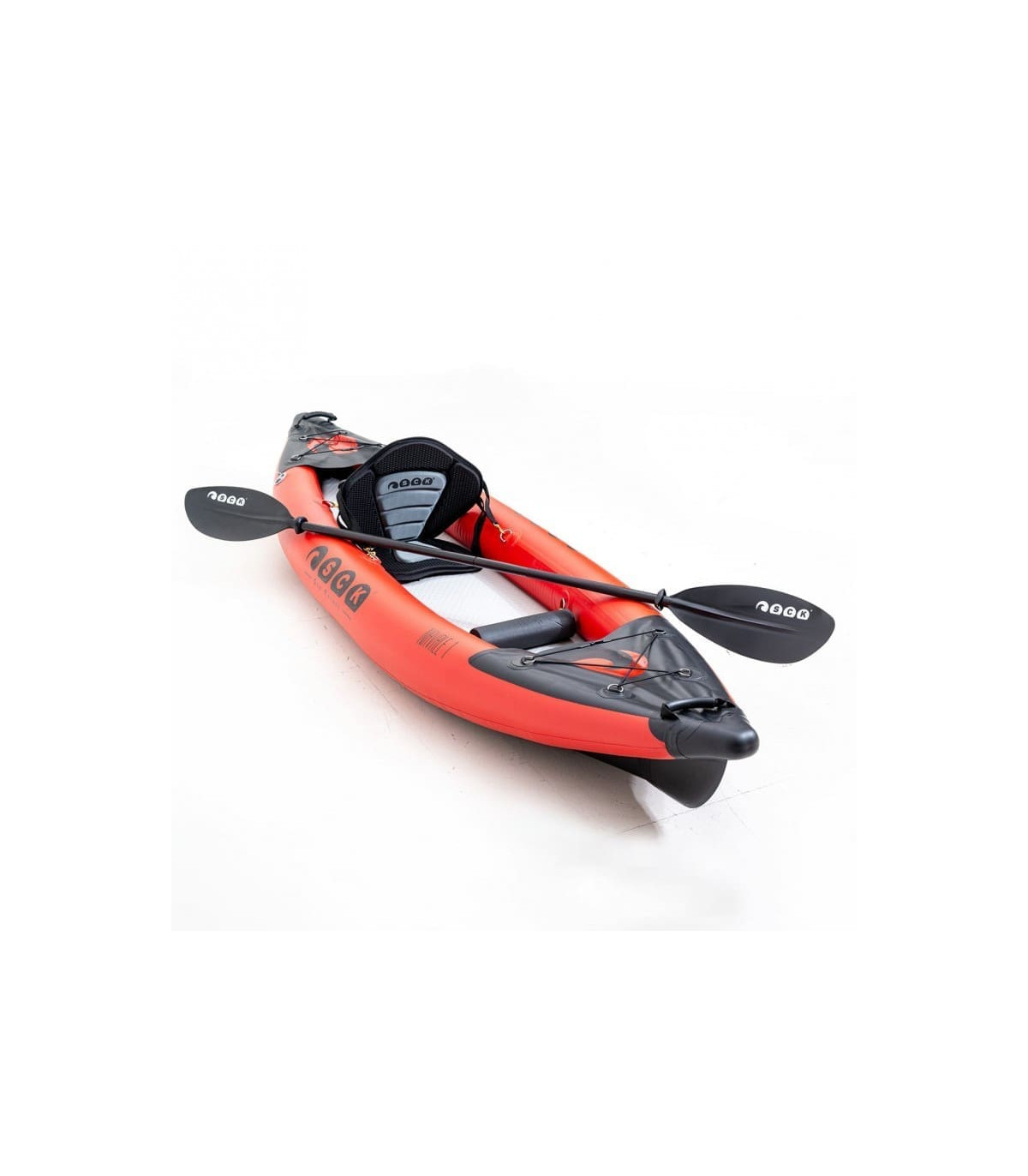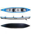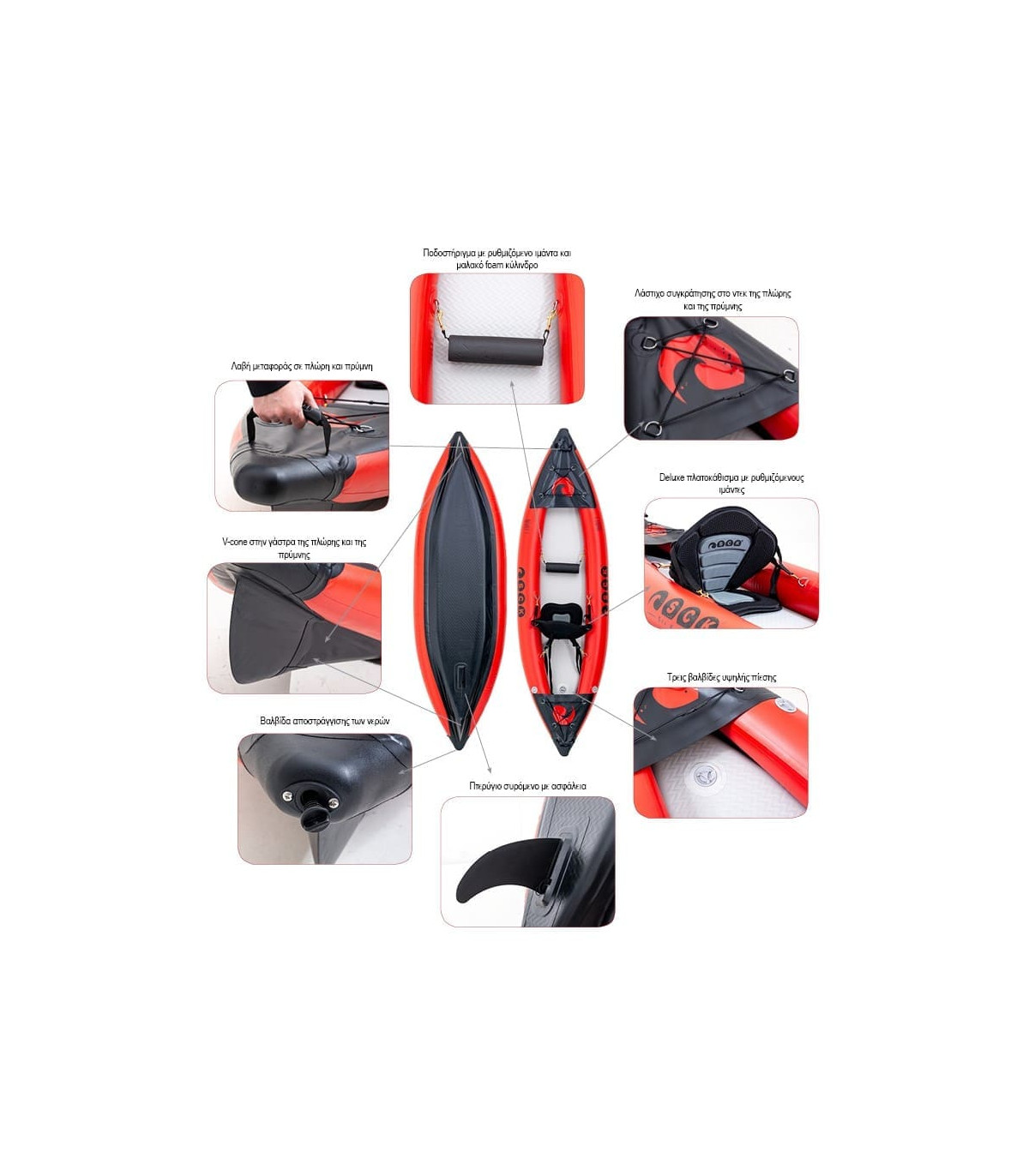 όπως ναυτικός…Φουσκωτό καγιάκ ανώτερης ποιότητας κατασκευής και άριστης πλεύσης! Αν ψάχνατε ένα φουσκωτό καγιάκ που να είναι εφάμιλλο σε πλεύση και ποιότητα με τα σκληρά τότε μην ψάχνετε άλλο, αυτό είναι το καγιάκ σας! Εύκολο στην αποθήκευση και στην μεταφορά, καθώς έρχεται με μια Deluxe τσάντα πλάτης με ρόδες, θα σας λύσει το πρόβλημα της αποθήκευσης. Κατασκευασμένο από ανθεκτικό υλικό 1000 Denier και πάτο με τεχνολογία drop-stitch για μέγιστη σκληρότητα παράλληλα με το διπλό layer PVC έχουμε ως αποτέλεσμα την ακόμα μεγαλύτερη αντοχή του καγιάκ. Ο πάτος που φουσκώνει σε υψηλή πίεση, προσφέρει άριστη πλευστότητα ενώ αυξάνει την ταχύτητα και το βάρος που μπορεί να σηκώσει το καγιάκ. Οι πλαϊνοί πλωτήρες με διάμετρο 21.5cm προσφέρουν μέγιστη άνωση και ασφάλεια, καθώς το κάνουν σχεδόν αδύνατο να αναποδογυρίσει ακόμα και με πλευρικά κύματα. Η πλώρη και η πρύμνη έχουν στον σχεδιασμό τους ένα σκληρό πλαστικό V-cone που δίνει τέλεια πλεύση ανεξαρτήτων καιρού προσφέροντας την απόλυτη απόλαυση στην κωπηλασία. Εκτός αυτού, το αποσπόμενο πτερύγιο εξασφαλίζει σωστή κατευθυντικότητα και εύκολο χειρισμό από τον κωπηλάτη. Στην πρύμνη είναι ενσωματωμένη μια βαλβίδα αποστράγγισης των νερών. Την ώρα που κωπηλατείτε το νερό που μπαίνει μέσα στο κανό σας χάνεται κάτω από τον πάτο χωρίς να ενοχλεί ή να το βλέπετε. Όταν θα βγείτε από το νερό, θα ανοίξετε την βαλβίδα και σηκώνοντας την άλλη μεριά του καγιάκ ψηλά, θα απελευθερωθεί όλο το νερό που είχε εγκλωβιστεί μέσα. Στην πλώρη και στην πρύμνη του καταστρώματος το PVC κάλυμμα, γνωστό ως spray deck, περιορίζει το νερό που εισέρχεται μέσα στο καγιάκ την ώρα της κωπηλασίας. Τα λάστιχα που υπάρχουν στις δύο άκρες του καγιάκ είναι για να ασφαλίσετε μια αδιάβροχη τσάντα με τα επιπλέον πράγματα σας, ή άλλον εξοπλισμό.