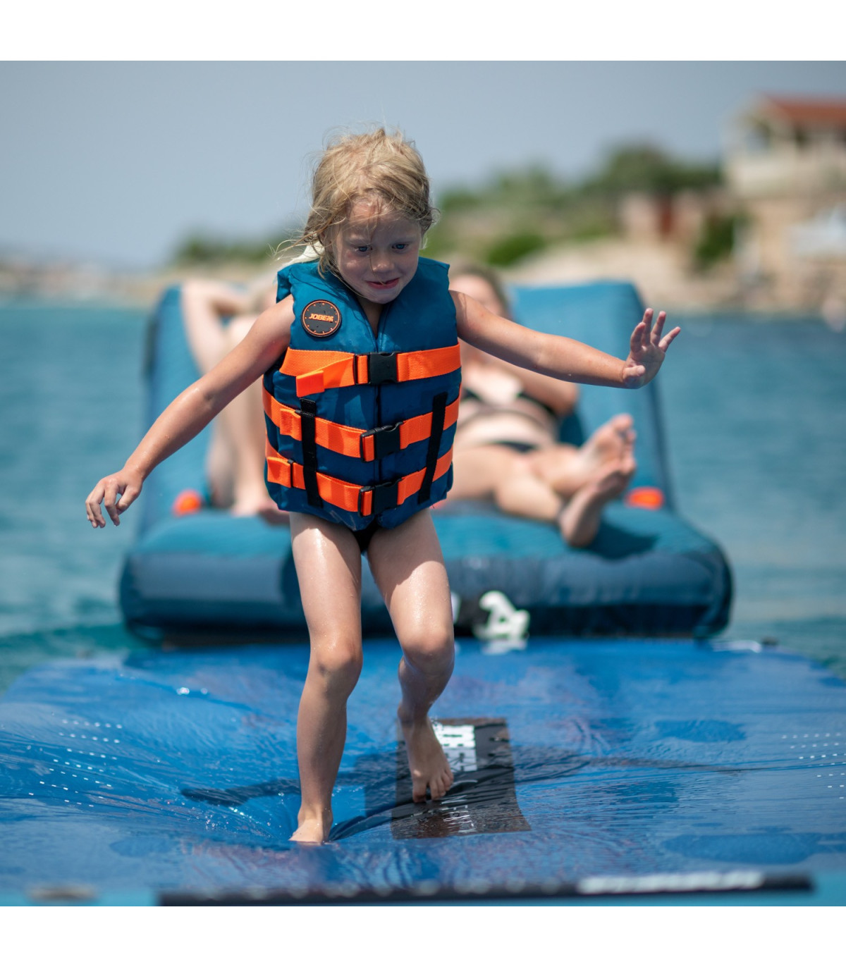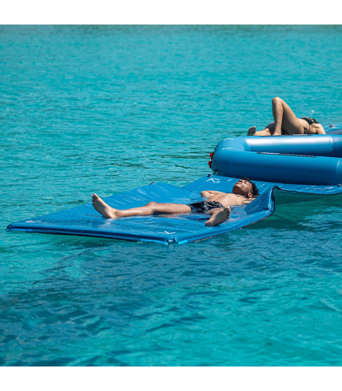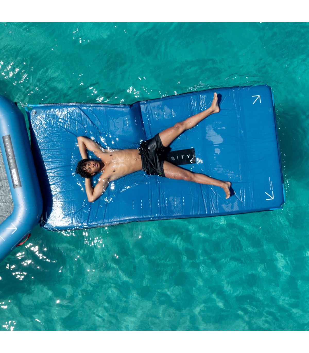 What can we say about the Jobe Manta Floating Mat? It's a floating, modular, self-inflating water mat that's built to last for the perfect on the water relaxation spot. This floating mat also features 4 anchor points for mooring options so you can hook up anywhere you'd like. The modular access zippers allow you to connect to additional Mantas, Switch or Retreat inflatables. The Manta also packs down small making it ultra portable. The perfect water mat for taking with you everywhere you want to float!