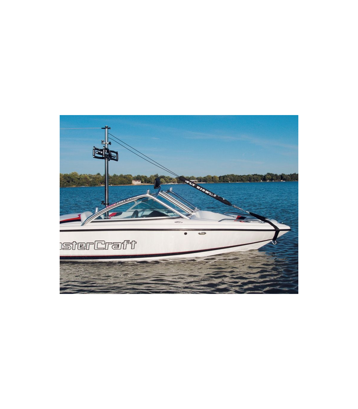 The original Fly High is still the only fully stainless, two-piece pylon on the market that will fit a 2.5" pylon. It is also made to split into two pieces for easy storage in one of your boat's compartments. It has dual steel cables that run to the bow eye for superior strength and safety. We put a polycarbonate sleeve inside the stainless to reduce vibration and wear on your factory pylon. This pylon is also equipped with a Delrin swivel at the hitch point to reduce strain on your ropes and make for seamless transfers from side to side behind the boat.