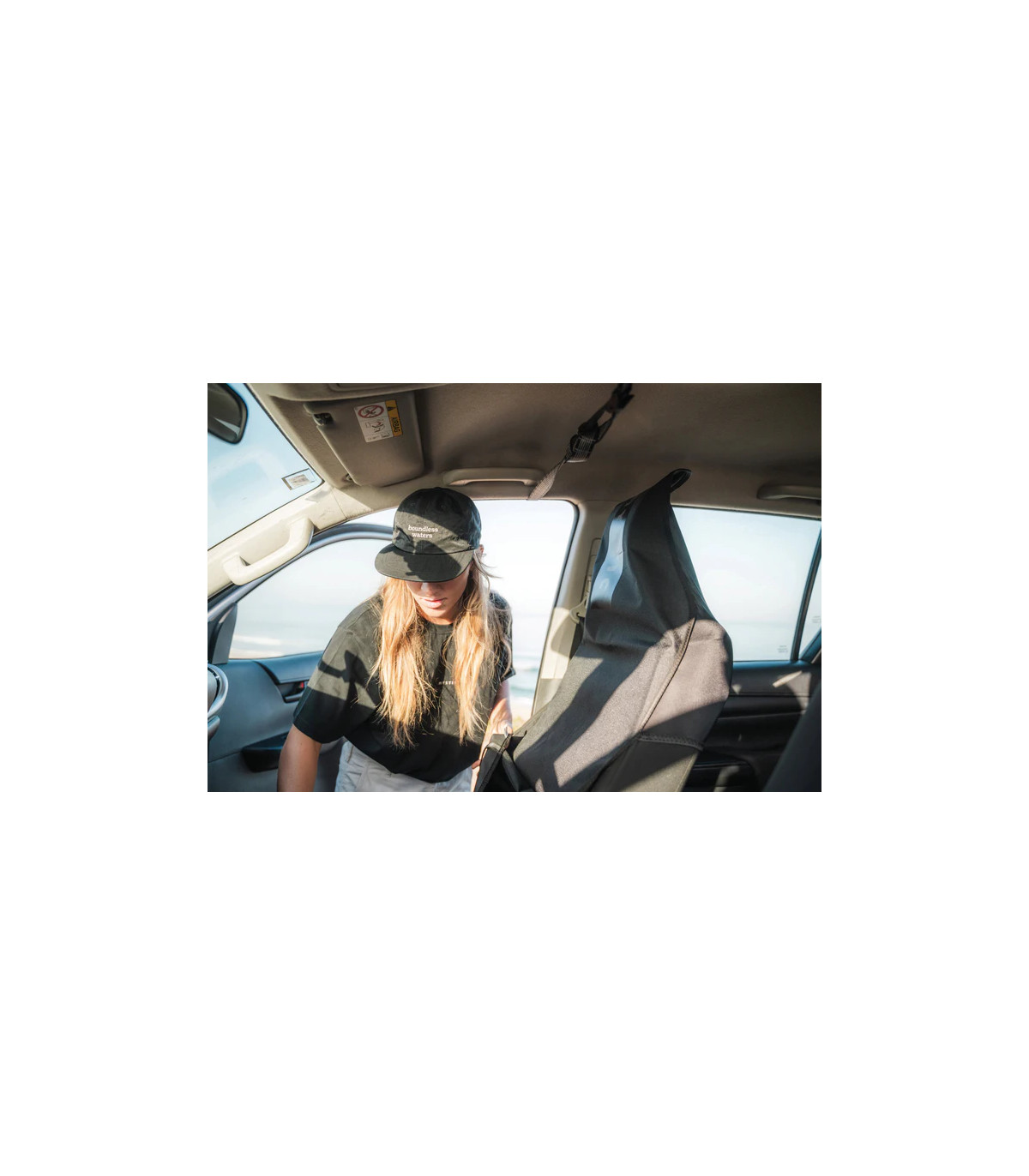 Drive home worry-free with the Car Seat Cover, which protects your seats from salt and sand after your session. This cover is water resistant and has an elastic fitting, so it will slide over most car seats and is easy to assemble. When not in use, roll it up into its compact storage bag.