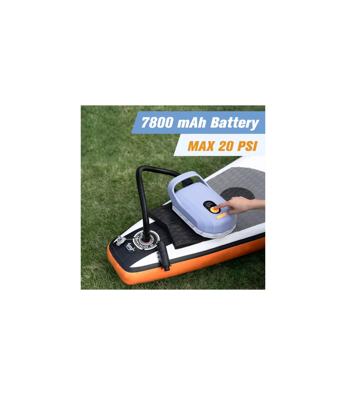 Powerful performance: Inflates up to 7 boards to 12 PSI on a single charge