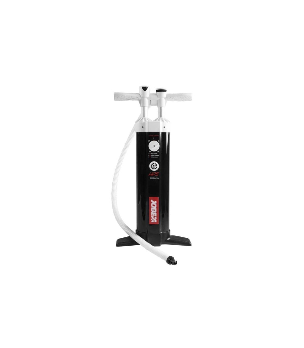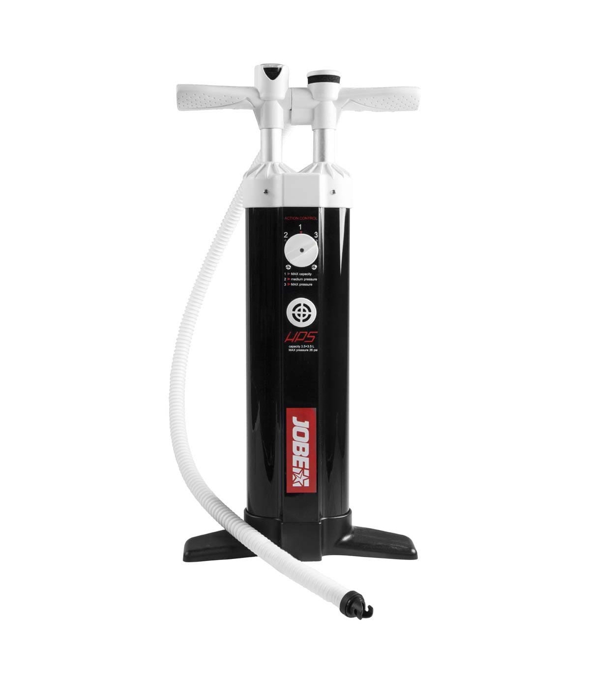 This Jobe triple-action SUP pump is designed to inflate SUPs to pressures of up to 21 PSI fast and easy! It features two 3,5 liter double action cylinders, a pressure gauge to keep control and a Halkey Roberts nozzle to fit all Jobe Inflatable boards on the market. The Jobe triple-action SUP pump has three different operating modes to keep inflation easy at any stage: Double action on 2 cylinders quickly inflates your SUP up to 5 psi. Single action on 2 cylinders lets you inflate your SUP to 10 psi at moderate speed. Single action on 1 cylinder to inflate your sup to a maximum of 21 psi with minimal effort.