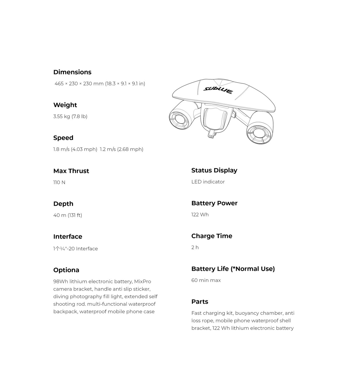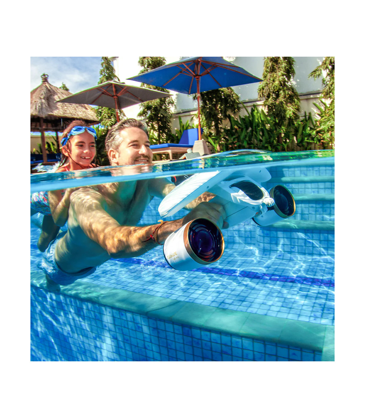 The world's first portable dual-motor underwater scooter with two-speed adjustment that can dive to 40m — reaching a top speed of 1.8m/s (4.0mph)!