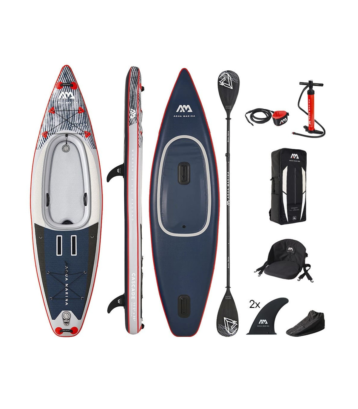 Το νέο CASCADE 3 σε 1 είναι ένα εξαιρετικό υβριδικό φουσκωτό με τεχνολογία drop – stitch που συνδυάζει Sup και  kayak sit-in και sit-on top .Tεχνολογία διπλού θαλάμου(Double Chamber Tech) με 20cm πάχος στον κύριο θάλαμο και  αποσπώμενο και λεπτότερο αλλά εξίσου άκαμπτο κεντρικό θάλαμο.Τα  89cm πλάτους και 20cm πάχους του προσδίδουν μεγάλη σταθερότητα και πολύ μεγάλο ωφέλιμο φορτίο. Ο μοναδικός σχεδιασμός της σανίδας με το αδιάβροχο κάλυμμα της θέσης του kayak,μας επιτρέπει να το μετατρέψουμε εύκολα  από  sit-on-top kayak σε sit-in για γρηγορότερες διαδρομές.