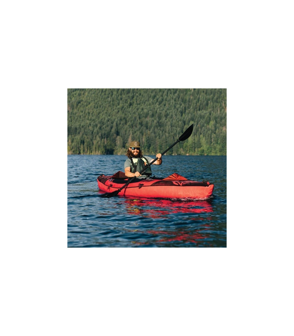 The Ranger iKayak from HO Sports is the kayak of choice for adventure seekers who want an inflatable Kayak with plenty of room.   The Ranger offers the performance of a rigid kayak with the convenience and portability of being inflatable.  The Ranger’s 3 inflation chambers make inflation/deflation a snap while the RIGID Drop-Stitch floor won’t bend or fold like some inflatable kayaks.  With 2 bungee storage zones on the top, as well as plenty of storage space under the cover, you will have ample room for all your gear.  The Ranger comes with an adjustable 2-piece paddle, an ergonomic high-back seat with storage pocket and built in fishing rod holders, a hand pump and backpack…everything you need to begin your kayak adventures. Construction Features