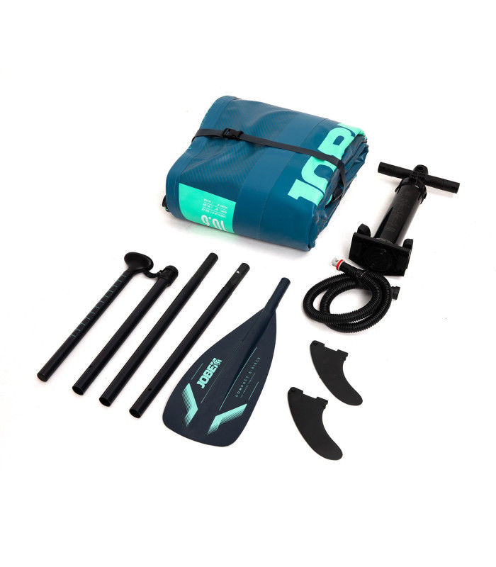 Zipper backpack, double action pump LIQUID AIR V1, SPORTS III paddle, slide-in center fin, safety leash
