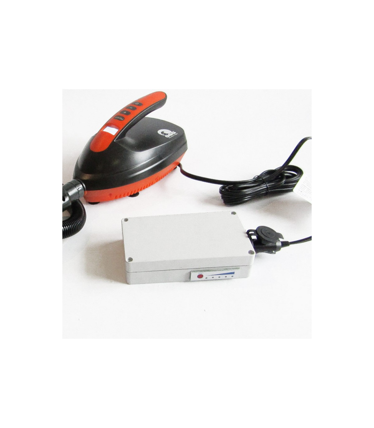 Φορτίστε την μπαταρία και φουσκώστε το SUP παντού, εύκολα και γρήγορα. Αναβαθμισμένο power bank με οθόνη LCD που σας επιτρέπει να βλέπετε την στάθμη της μπαταρίας. Μία πλήρως φορτισμένη μπαταρία μπορεί να φουσκώσει 2 σανίδες SUP.   Χαρακτηριστικά • Μπαταρία λιθίου 8 AH (+/-5%) • 60’ αυτονομία • Ένδειξη στάθμης ενέργειας σε LCD οθόνη • Φουσκώνει 2 SUP • Μπορεί να φορτιστεί πάνω από 1000 φορές • Χρόνος φόρτισης 4-6 ώρες • Βάρος: Περίπου 500gr • Περιλαμβάνει: Φορτιστή πρίζας • Θήρα εξόδου: 12V αναπτήρας αυτοκινήτου με καουτσούκ καπάκι