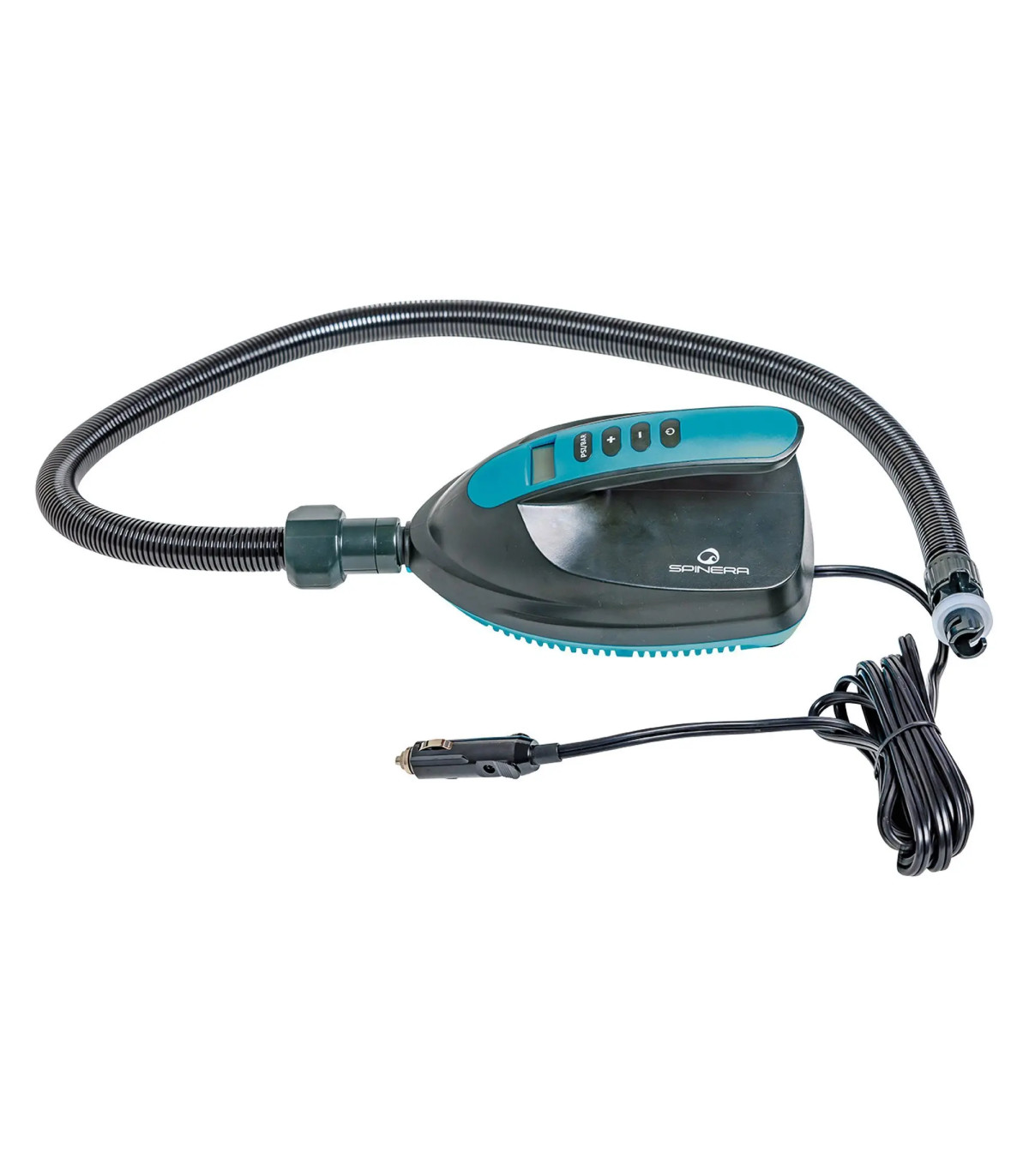 Introducing the Spinera High Pressure 12V Pump, capable of reaching 16 PSI, perfect for your SUP and outdoor adventures. This innovative pump features automatic shut-off functionality, stopping automatically once the preset PSI is reached, ensuring hassle-free operation. Its compact design, in striking orange and black ABS + PA material, makes it a standout addition to your gear. Equipped with a digital LCD and touch-button interface, controlling the pump is intuitive and user-friendly. Included in the package are essential accessories: a 12V DC cable with a 3m length, a 100cm air hose, and 5 different valve adapters, providing versatility for various inflatable items. With an airflow of 70 l / min, the pump inflates your gear efficiently. Its dimensions of 23x14x12cm and weight of 1.4kg make it portable and convenient to carry. Notably, its automatic shut-off feature ensures precise inflation, while its high-pressure capabilities make it suitable for tents, SUP boards, kayaks, and more. Please note, however, that this model does not support air extraction. For an 11 ft SUP board with a 15 cm Dropstich, inflation times are approximately 15 minutes for 10 PSI and 20 minutes for 15 PSI. Operating at a noise level of 76 dB, this pump allows for a quiet operation, enabling you to enjoy your outdoor experiences without disturbance.