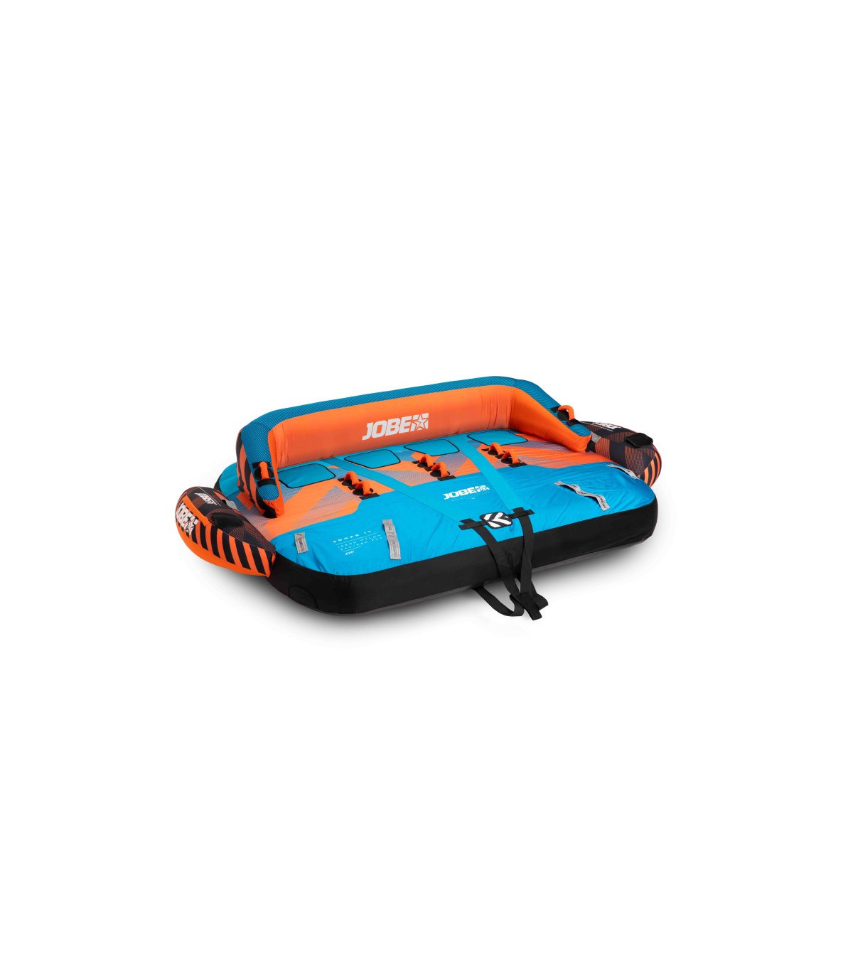 The Jobe Rental Sonar Towable 4P has been rigorously tested to ensure maximum durability and performance, making it the ideal choice for intensive rental use or group fun. Featuring Jobe’s new and improved webbing system, the Sonar offers exceptional strength and reliability, even under heavy load. Designed for up to four riders, it delivers a fast, stable, and comfortable ride every time. The combination of a 1680D nylon cover, 1000D PVC inner, and reinforced tarpaulin bottom guarantees long-lasting quality and improved fuel efficiency for your boat. Tough, powerful, and built to perform — the Sonar 4P is ready to take on any challenge on the water.