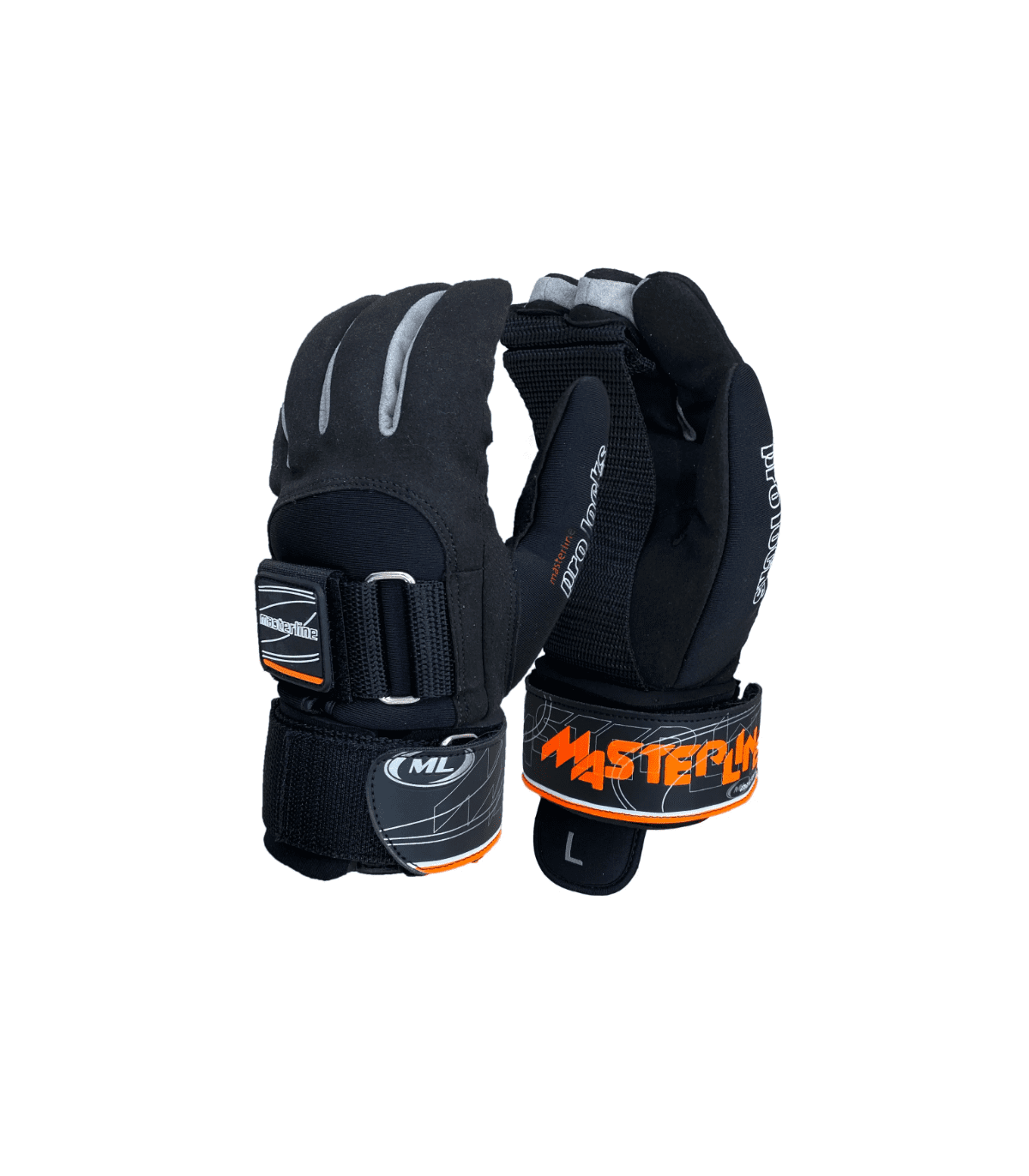These Masterline water ski gloves are designed to transfer the pulling force from the hands, fingers, and forearms into the bone structure to provide superior strength and endurance. The exclusive Masterline fit features palm straps with dowels for superior grip strength. This helps alleviate fatigue and eliminate blisters. Details: