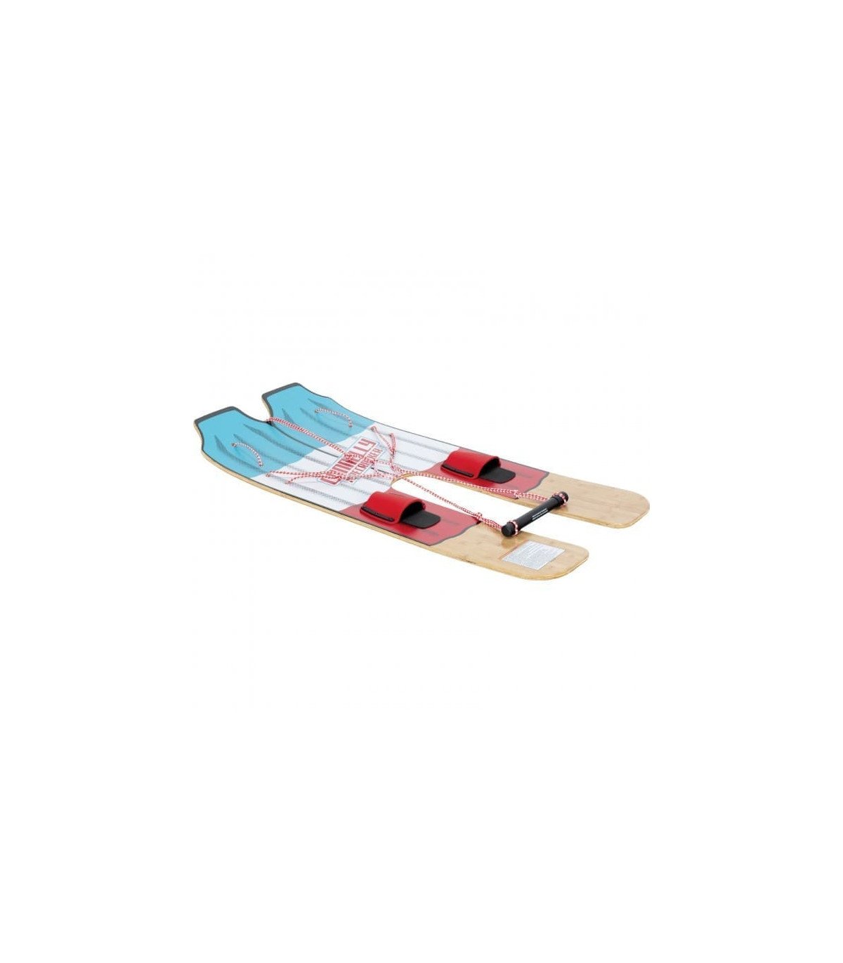 A single piece "U" shaped design provides youngsters with the most stable platform learn the basics of skiing. The integrated two handle rope system is held by a spotter and connects directly to the platform and then extends to the rider. This eliminates the burden of holding yourself up on starts, and the spotter can drop the handle to release the rider when they're done.