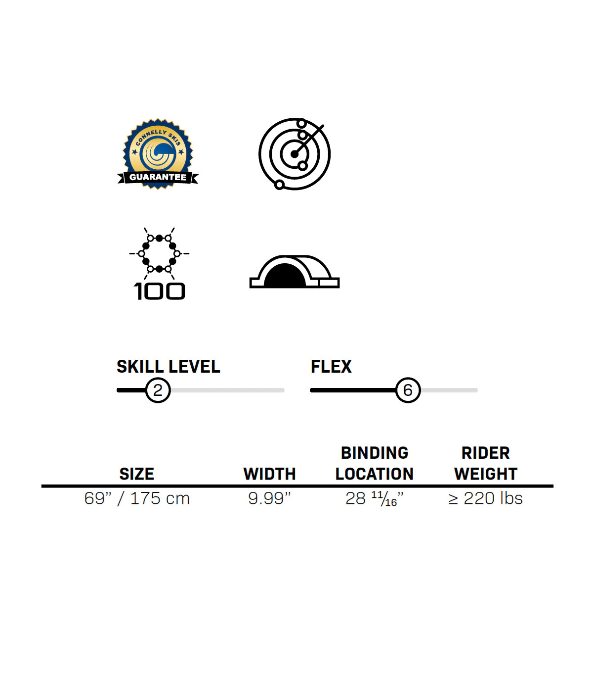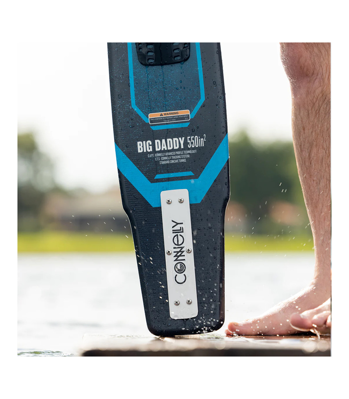 69" Larger skiers and newbies will appreciate 550 square inches of surface area. A wide tip and tail, combined with C.T.S. (Connelly Tracking System), allows for effortless deep water starts. The narrow underfoot design and forgiving flex pattern provides smooth performance at speeds 28 mph and under. The Big Daddy works so well we offer the industry’s only Performance Guarantee.
