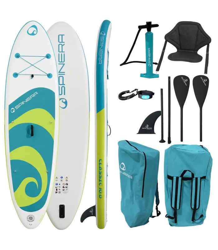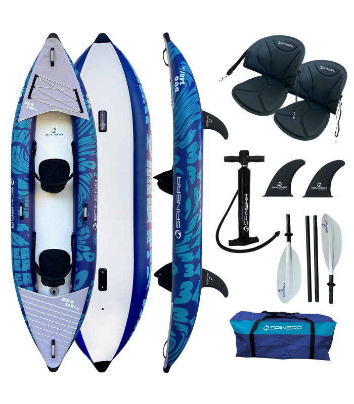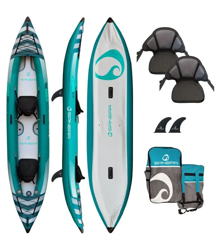 • Extras: 1 EZ-lock click fin, 2 bungee ropes, back and front PVC splash panels, drain plug, and repair kit