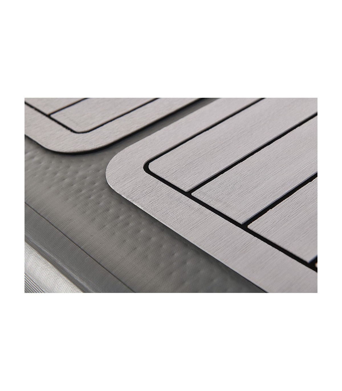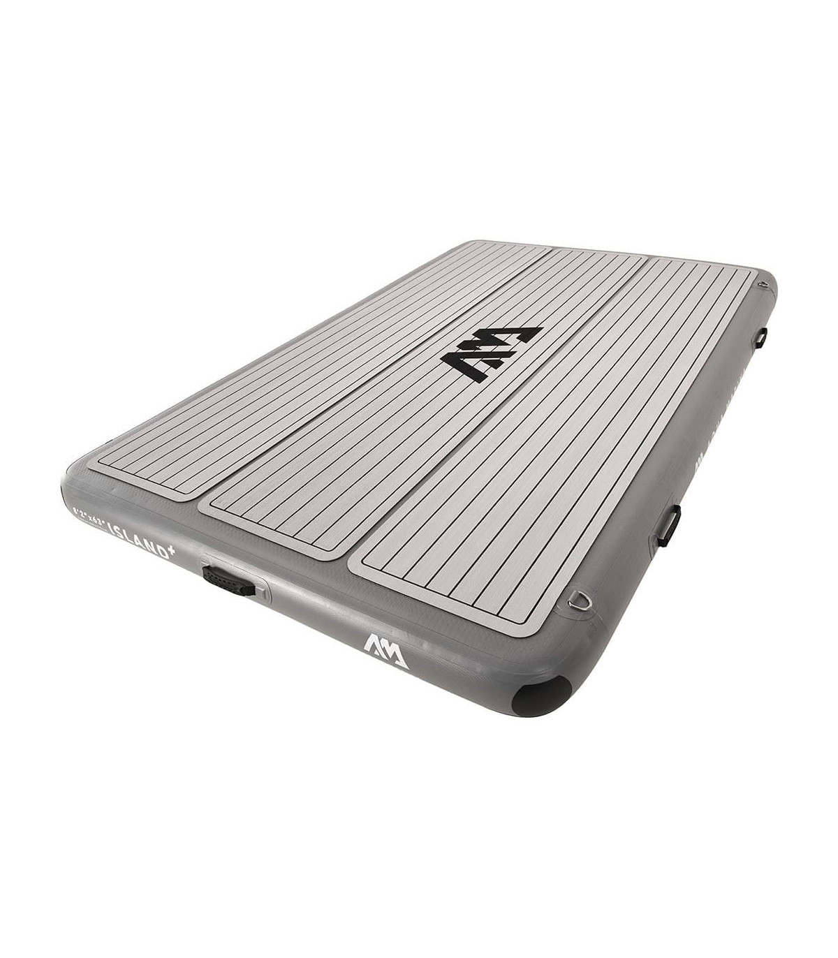 Inflatable platform Double wall 15cm, with drop stitch technology for maximum rigidity and durability Reinforced sidewall With UV inhibitors for longer protection from ultraviolet radiation Practical handles for easy access from the water Large capacity 3+1 people Εφοδιασμένη με ανοξείδωτους κρίκους και ιμάντα για εύκολη σύνδεση με άλλες πλατφόρμες The ISLAND+ features a wood-textured non-slip EVA coating throughout for ultimate stability and comfort