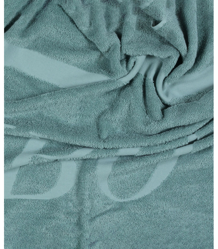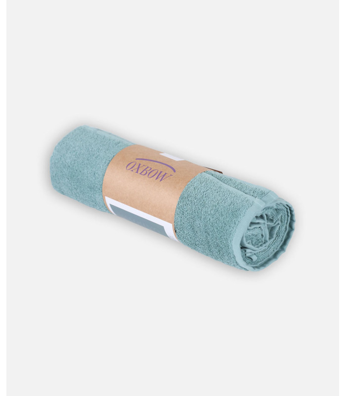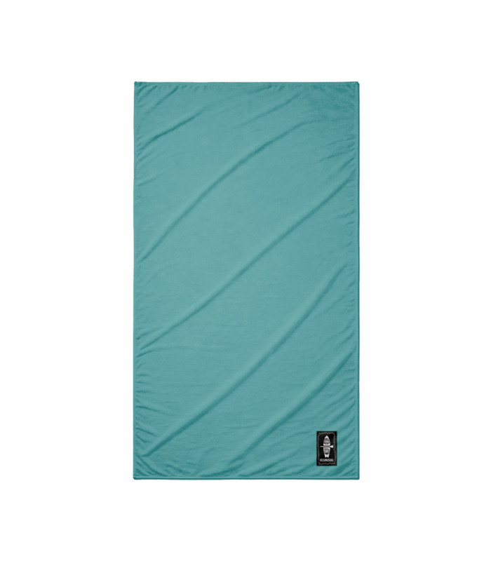 Towel with one terry side for absorption and one velour side, embroidered logo, 340gsm.