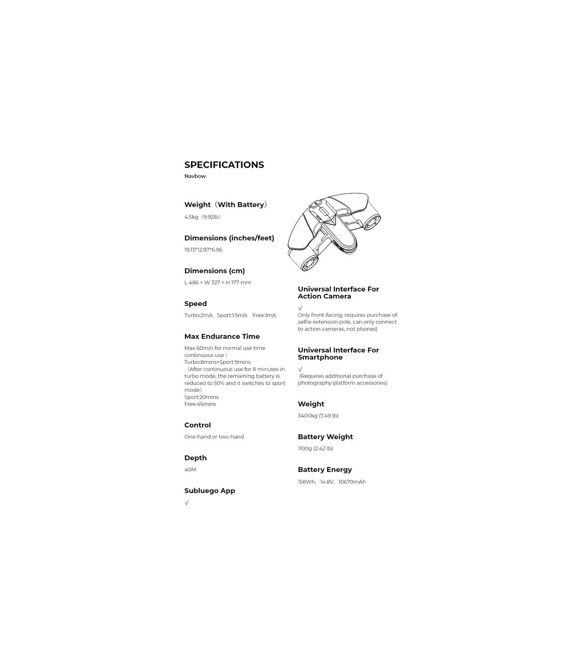The Navbow is designed with a super-silent motor and will not cause harm to marine organisms , especially important for underwater photographers.