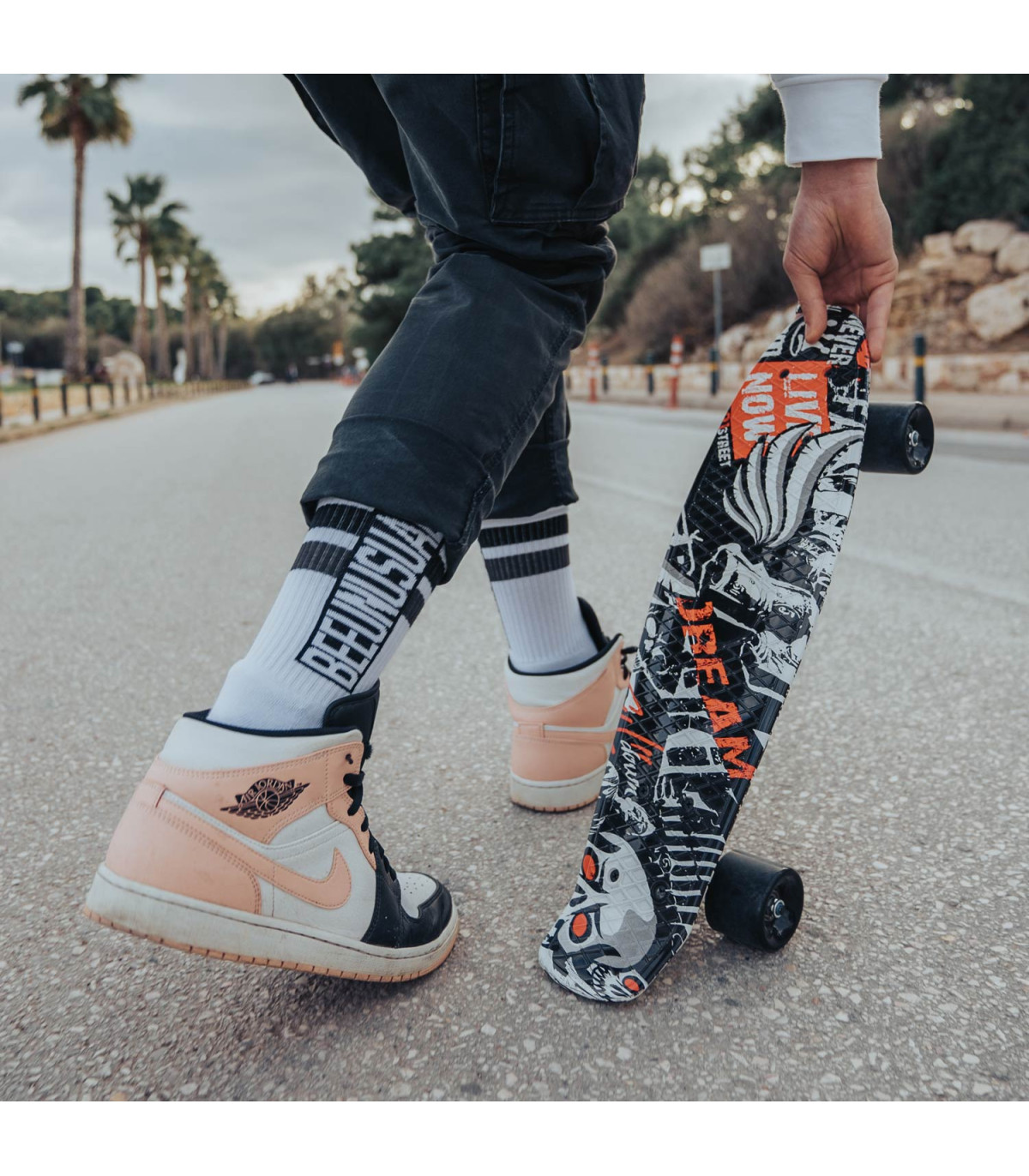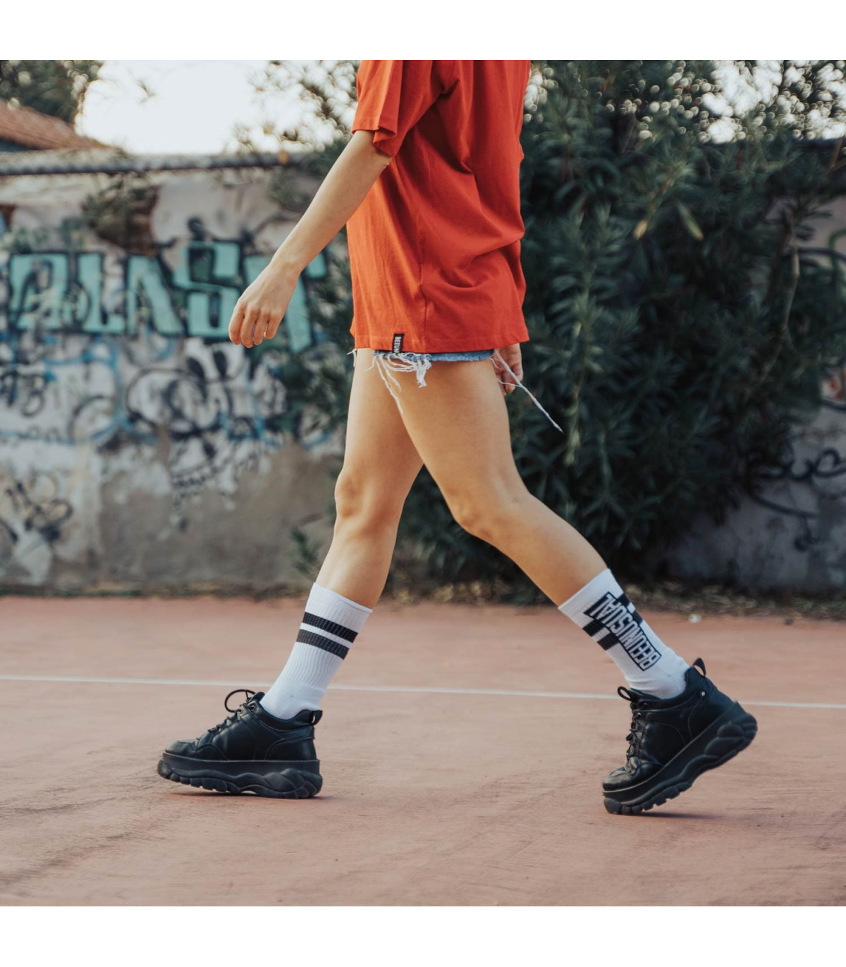 Calf high 3×1 rib comfort top.