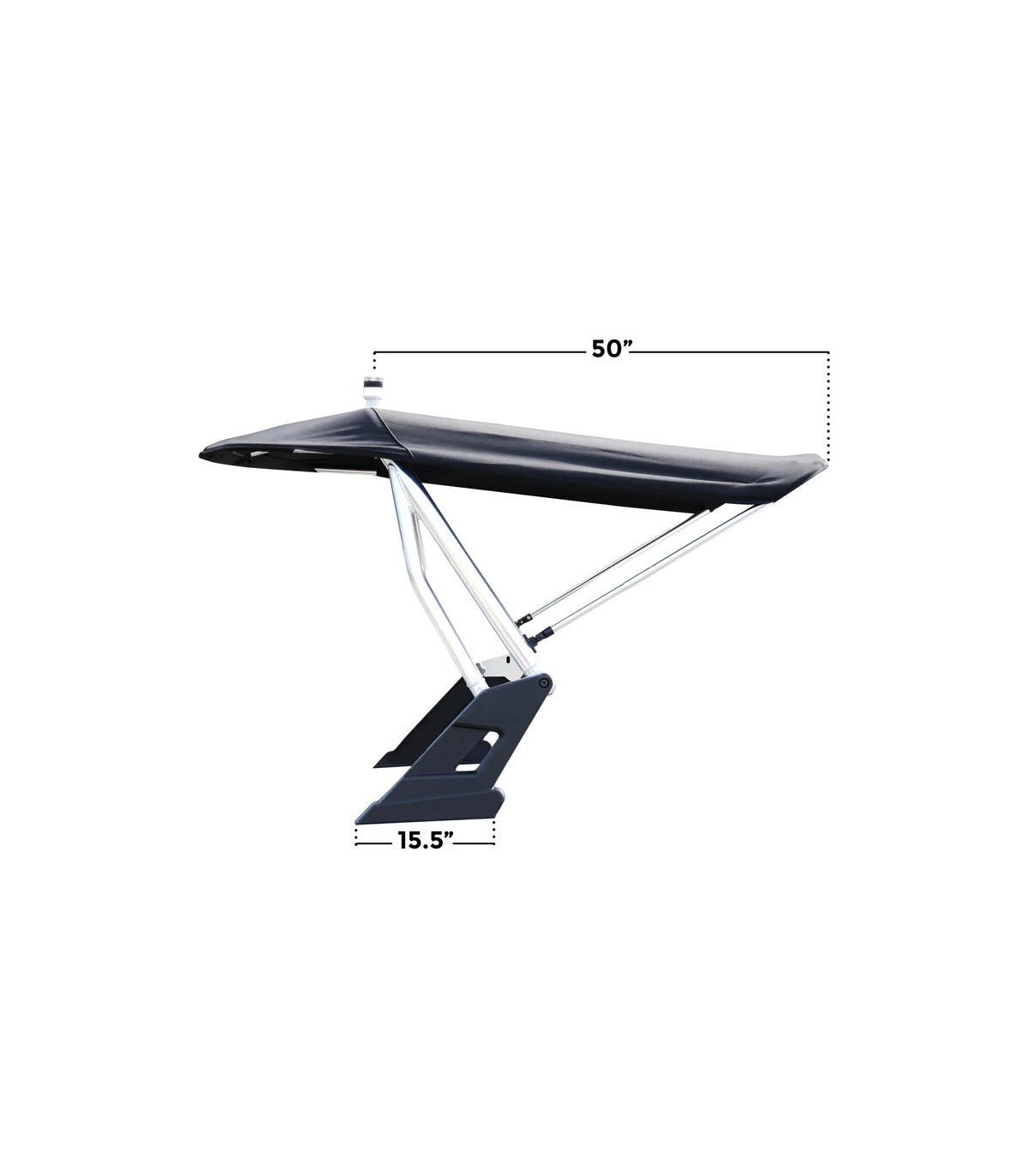 The bimini folds down easily without the need for tools and comes with a matching storage boot for convenient storage when not in use.