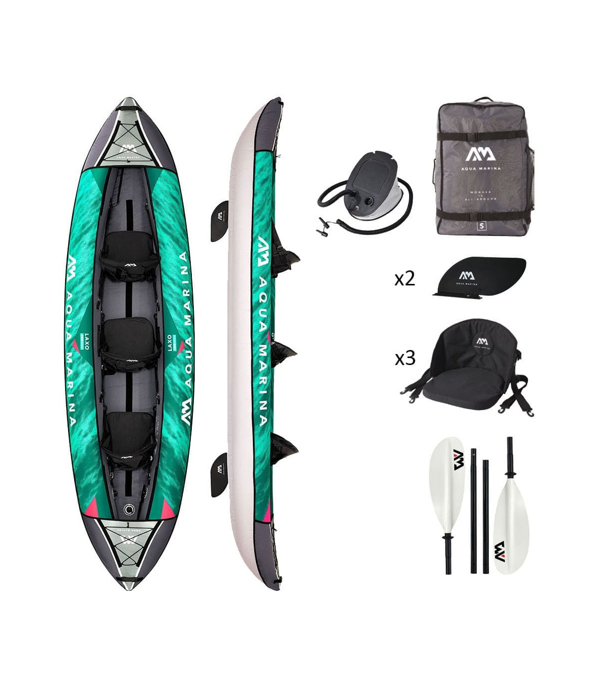 3-person inflatable kayak with revolutionary heavy-duty protective fabric (AQUASHELL TM technology)