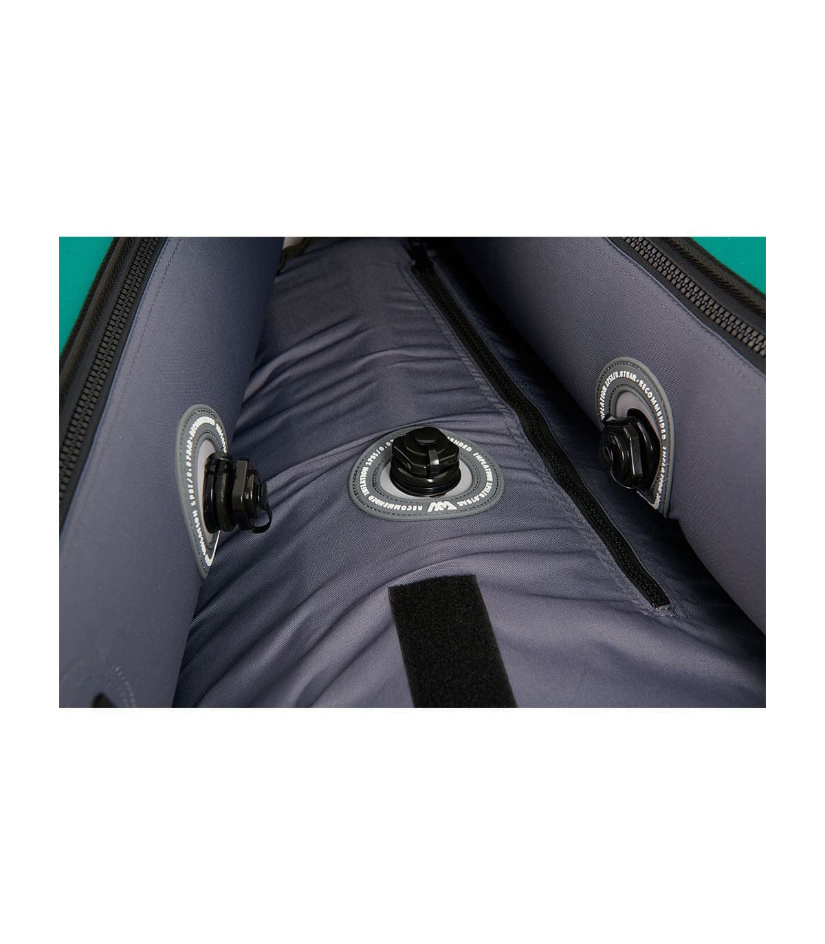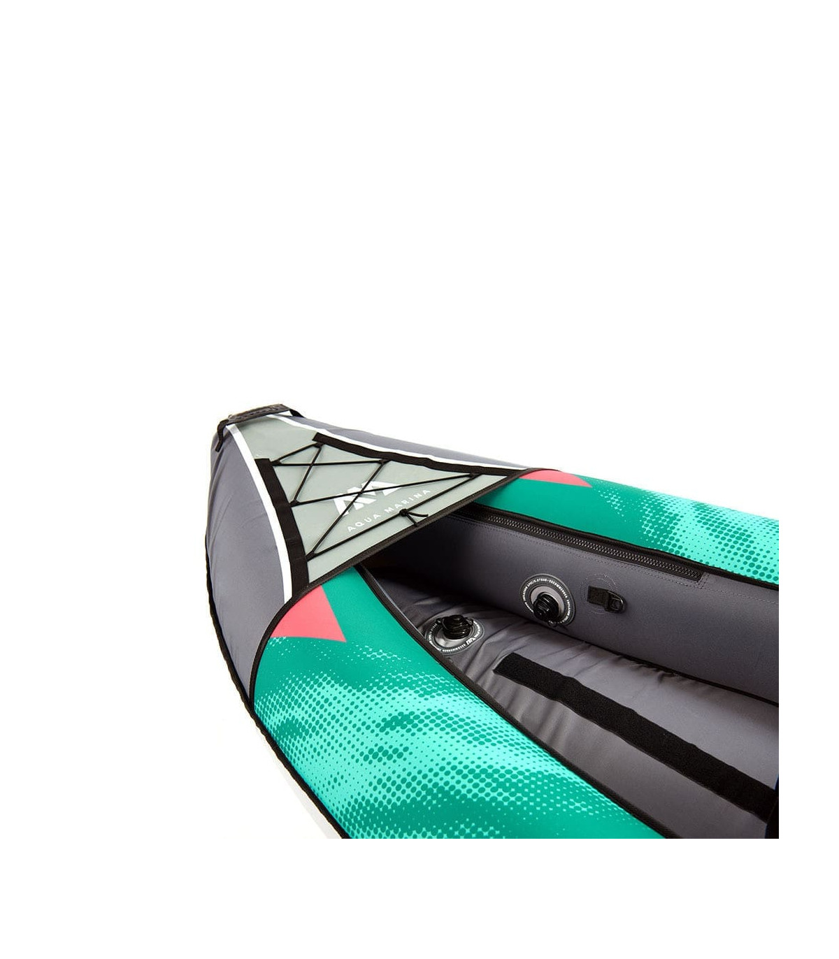 Inflatable V keel, for greater stability. Elastic cords in front and back for storing items.
