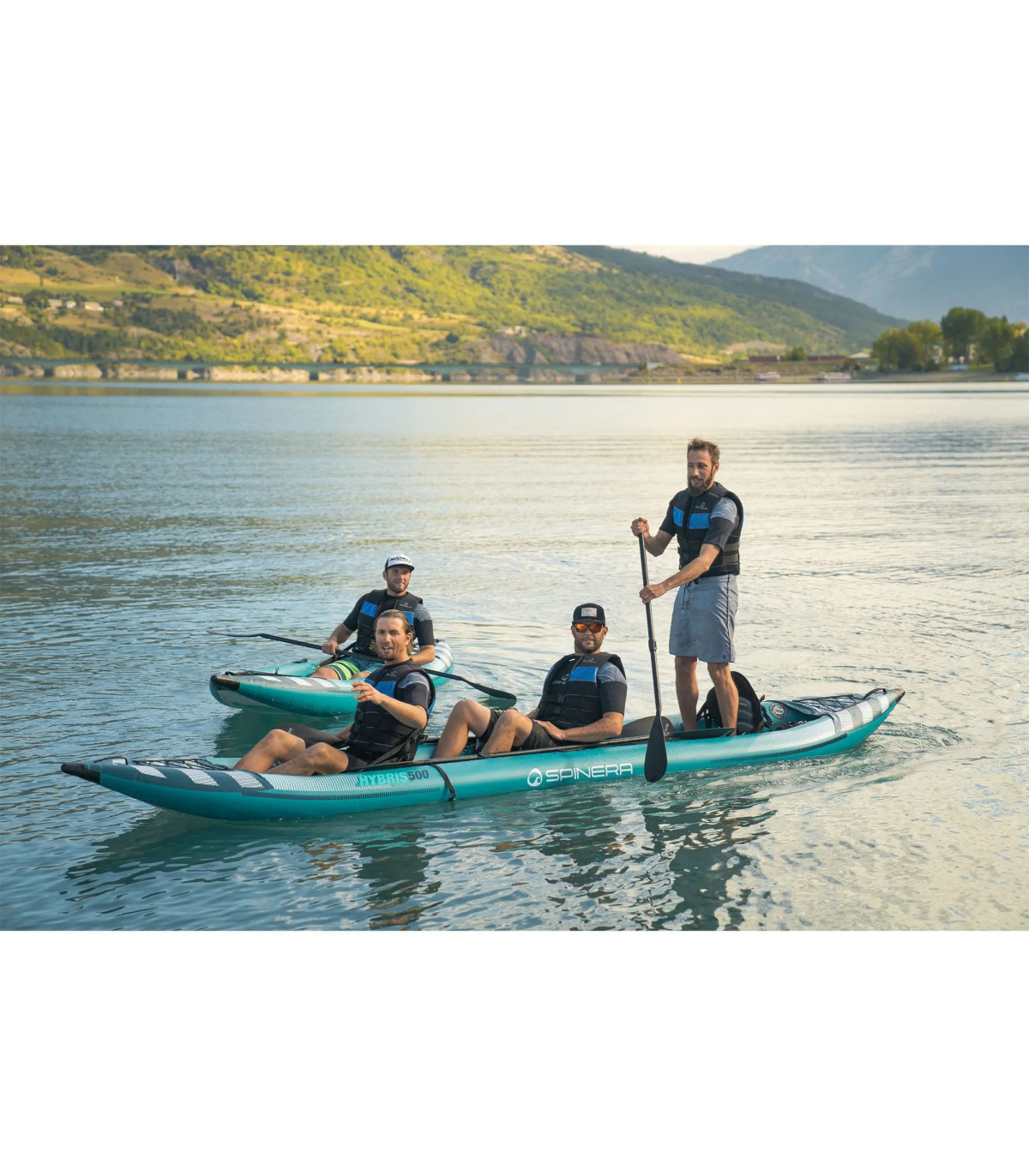 The Hybris series from Spinera is the ultimate all-round touring kayak line, especially designed to equip you for exciting experiences on rivers, lakes and in the sea. With 4 different sizes to choose from, you are guaranteed to find the right model for your needs.   With a size of 475 x 90 cm, the Hybris 475 kayak offers enough space for up to 3 people. This inflatable kayak is designed to give you stability and outstanding gliding properties thanks to the smooth tarpaulin bottom combined with the 8cm HDDS (High Density Drop Stitch) bottom.   The Spinera Hybris series promises unforgettable adventures on the water.   Get in, discover the beauty of nature and share these unique moments with friends and family. Get ready for exciting water sports adventures!   Features that inspire: