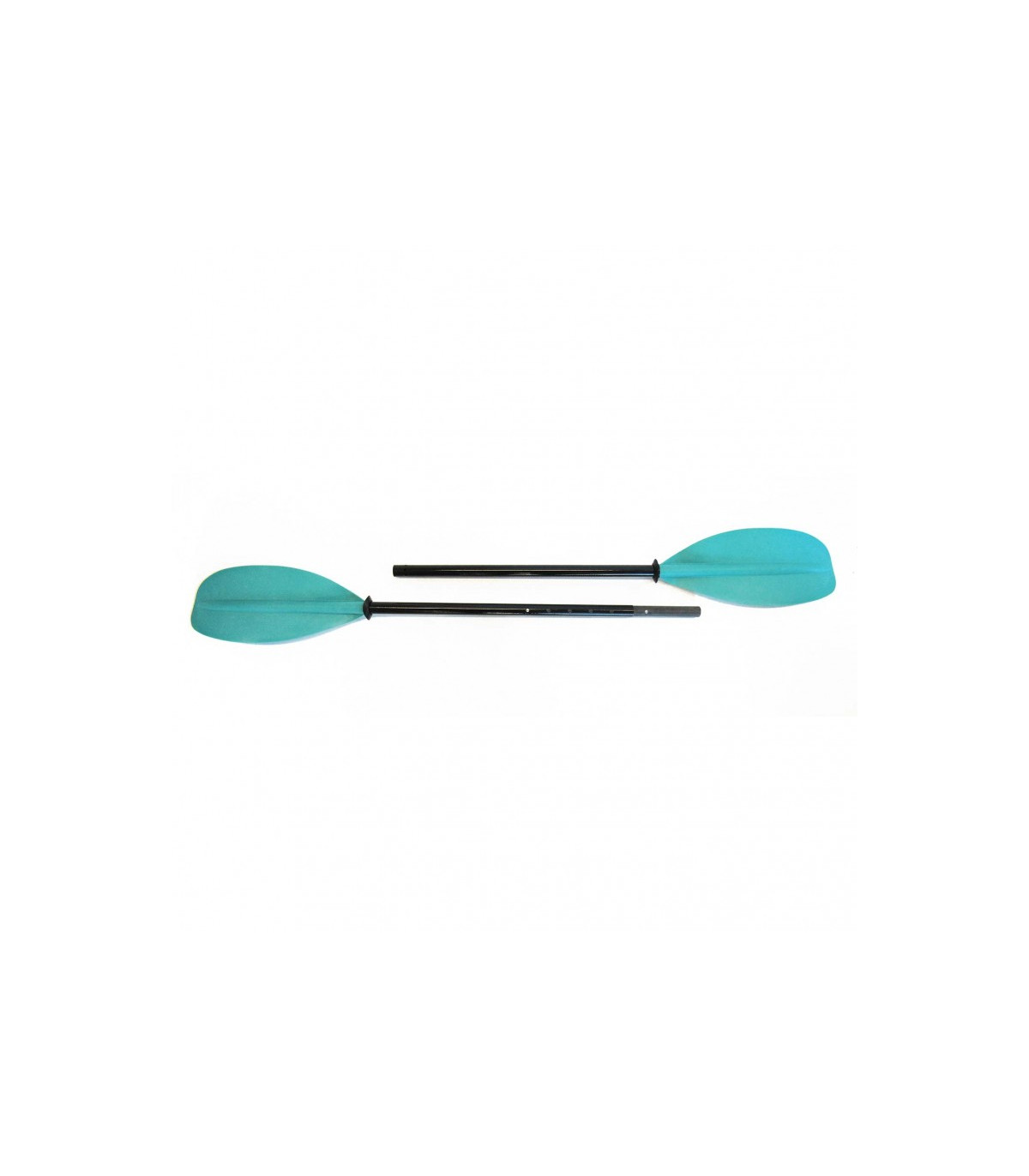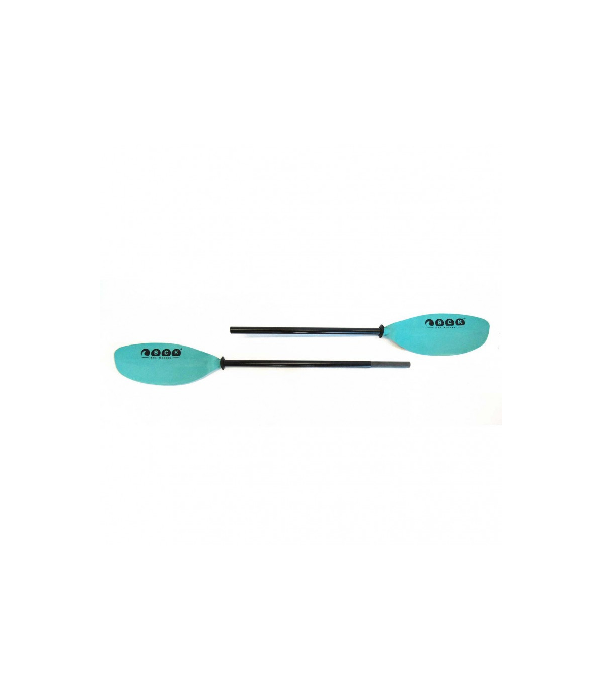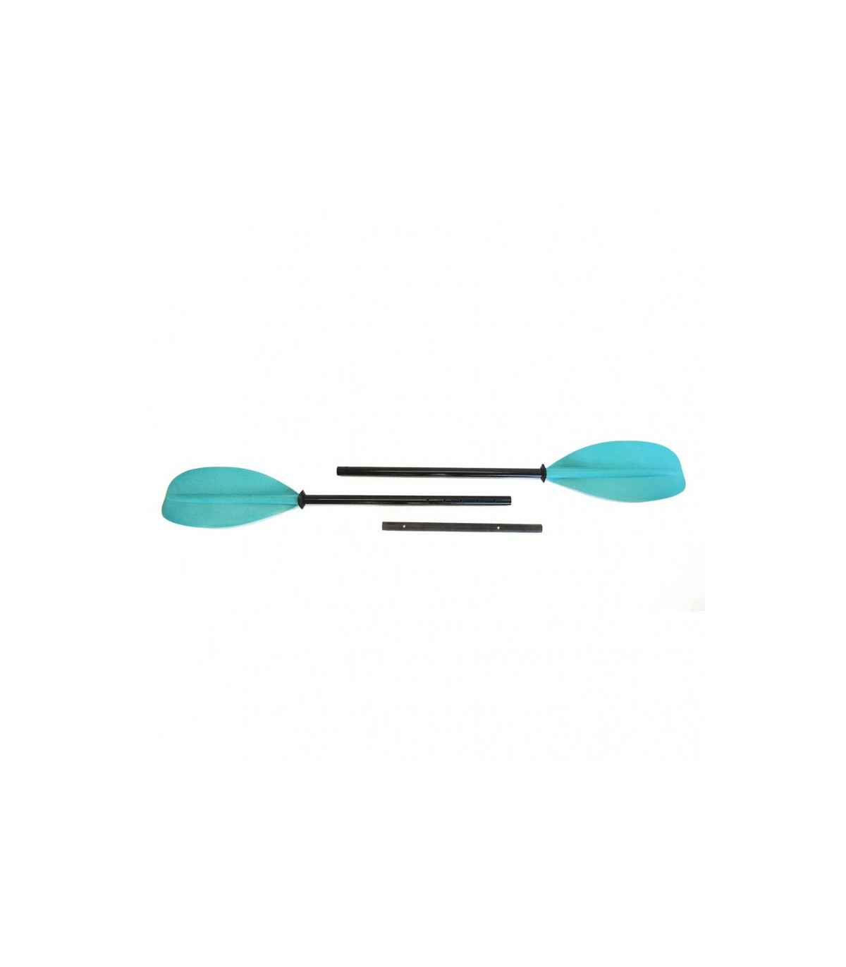 ◦ Shaft fiberglass ◦ Split in 3 parts for easy transport and adjustment ◦ Adjustable paddle legth 215cm, 220cm, 225cm, 230cm, 235cm ◦ Blades polypropylene with 20% fiberglass ◦ Blade size 42cm x 21cm ◦ Shaft diameter 30mm ◦ Weight 980 gr ◦ Connect at straight position or 45o tilt to the right/left ◦ Color: black fiberglass shaft with blue blades