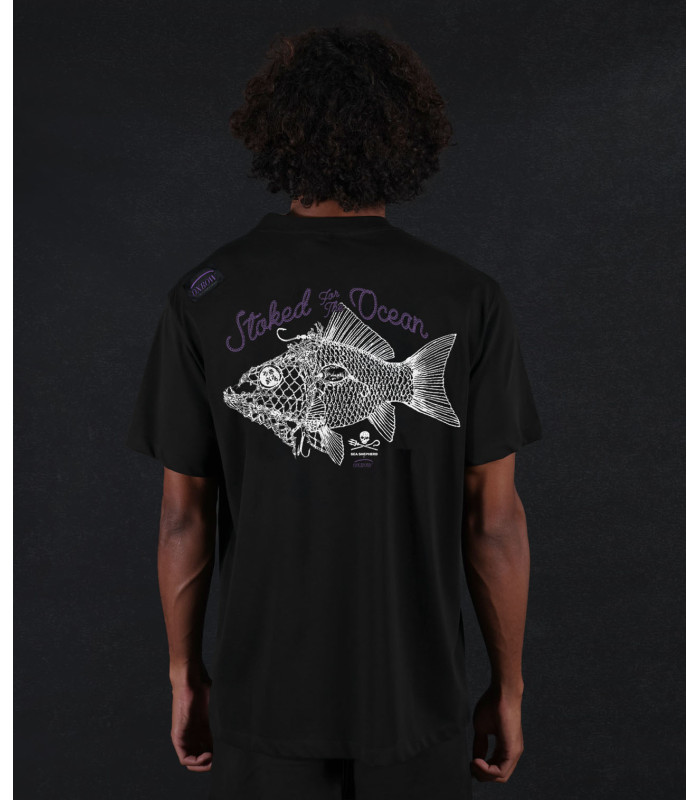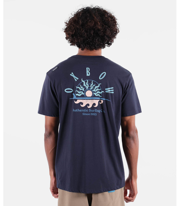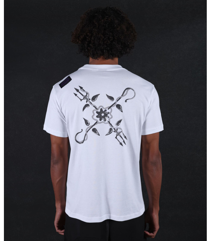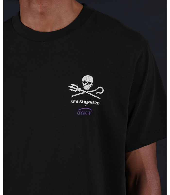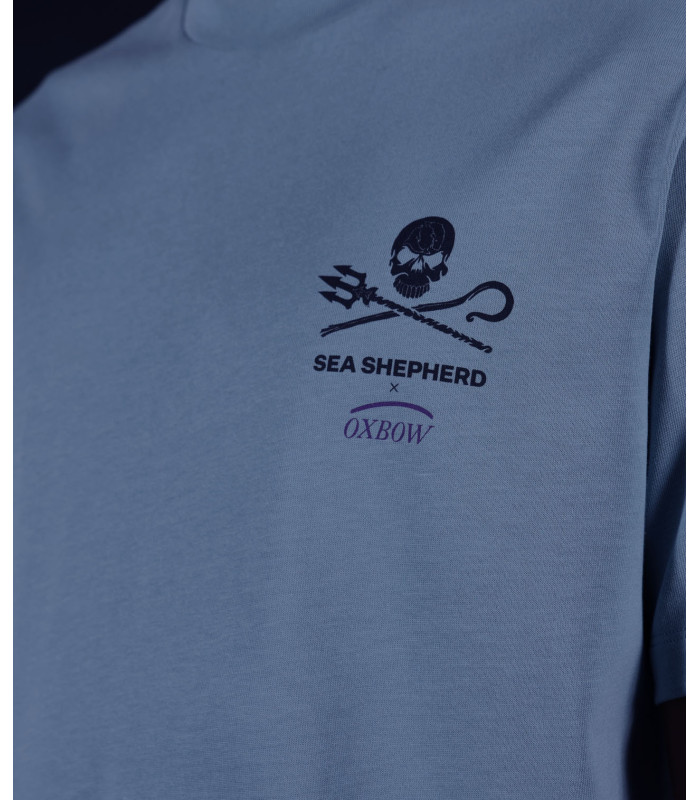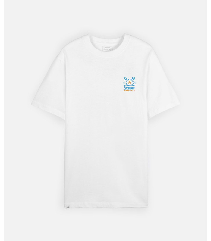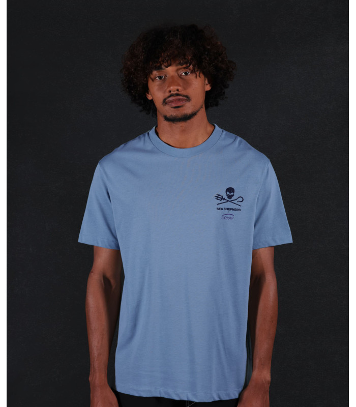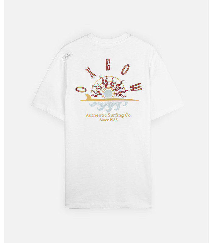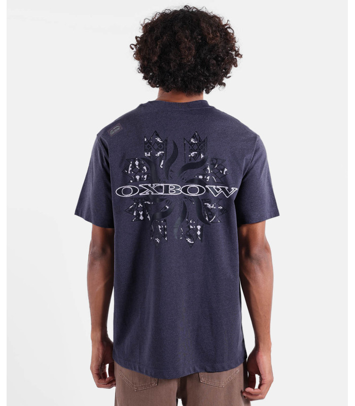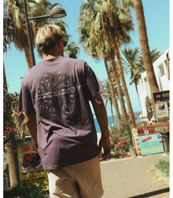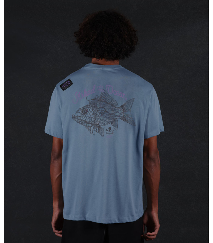 Round-neck T-shirt, printed graphic on the back with chest logo, fluid and lightweight modal cotton jersey.