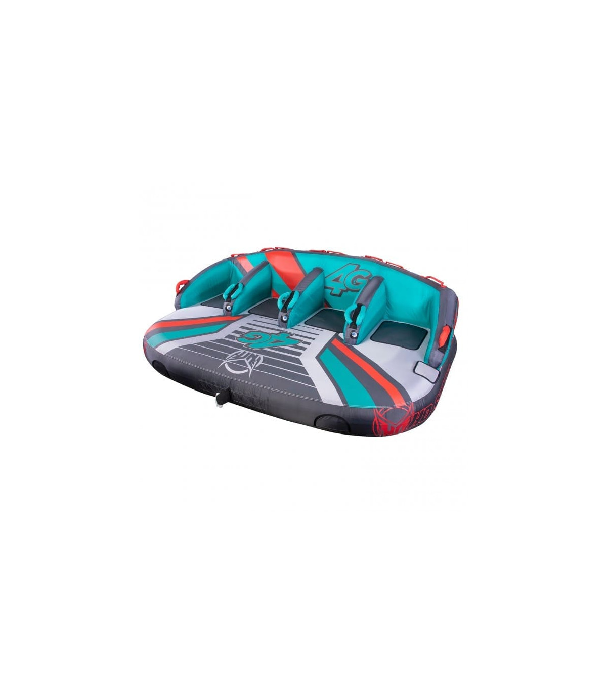 HO Sports is proud to introduce the new, modular 4G towable. Grab 3 of your friends and sit down in the ergonomic, lounge style seats OR flip the tube around and kneel on the neoprene pads while towing the tube from the opposite side...either way works great! Made from only the finest materials and backed by our 1 year limited warranty, the 4G will keep you where you want to be...on the water! Style: Towable Riders: 4 Size: 243 x 154cm Features