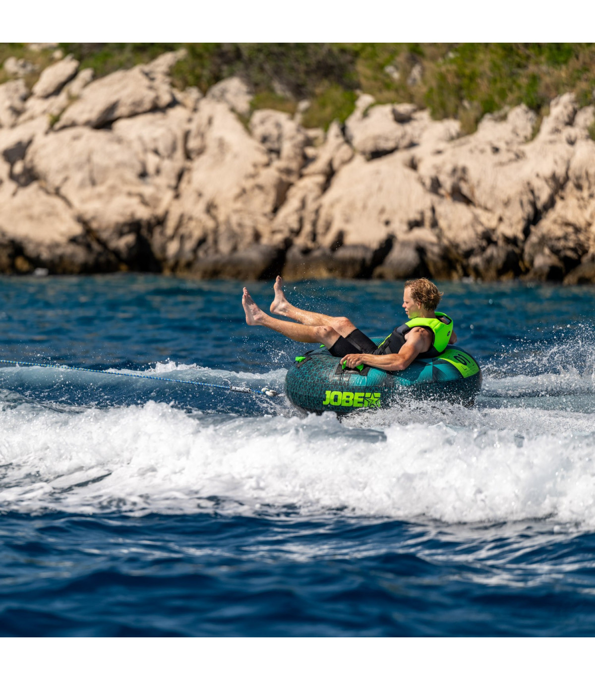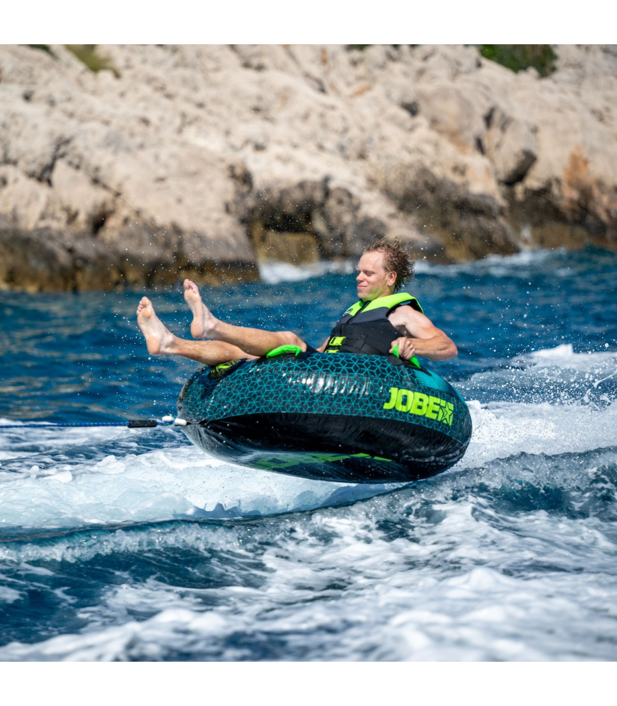 Set foot on the almighty Hotseat, Jobe's fastest and most durable 1 person donut towable. The difference between the Hotseat and the other donut towables is the full 840 denier cover, which makes this the most durable donut towable. The Hotseat is equipped with 4 luxurious neoprene knuckle-guard handles that offer grip and comfort.