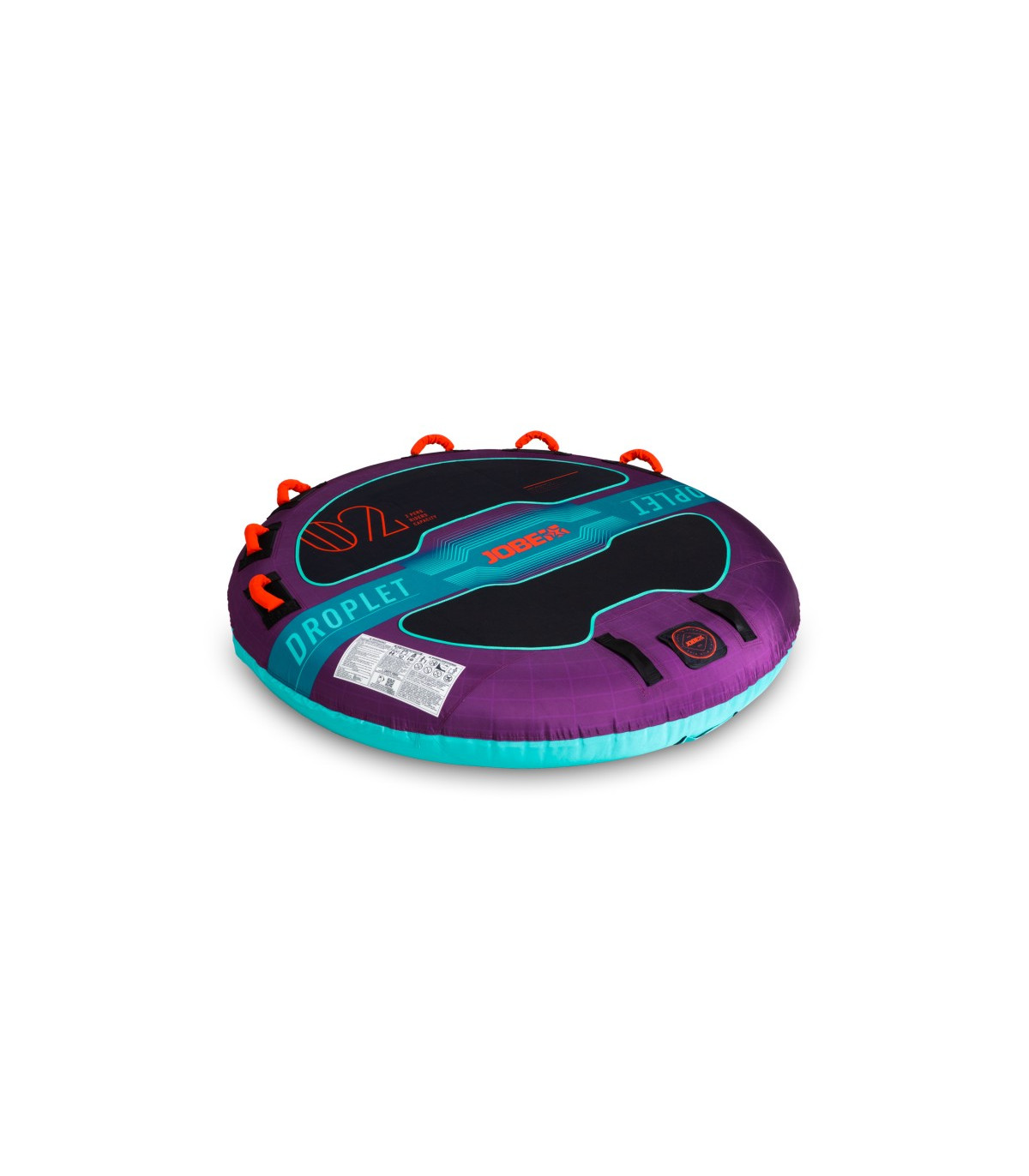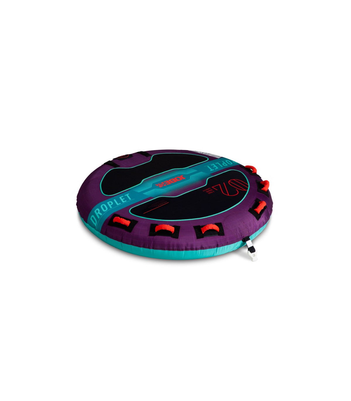 The Jobe Droplet has a 2 person capacity, but 6 soft and grippy handles to make sure you can hold on tight while bumping over the waves. This towable has an inner made of heavy duty 24G PVC and is fully covered in strong 420 denier nylon with a clean blue pattern.