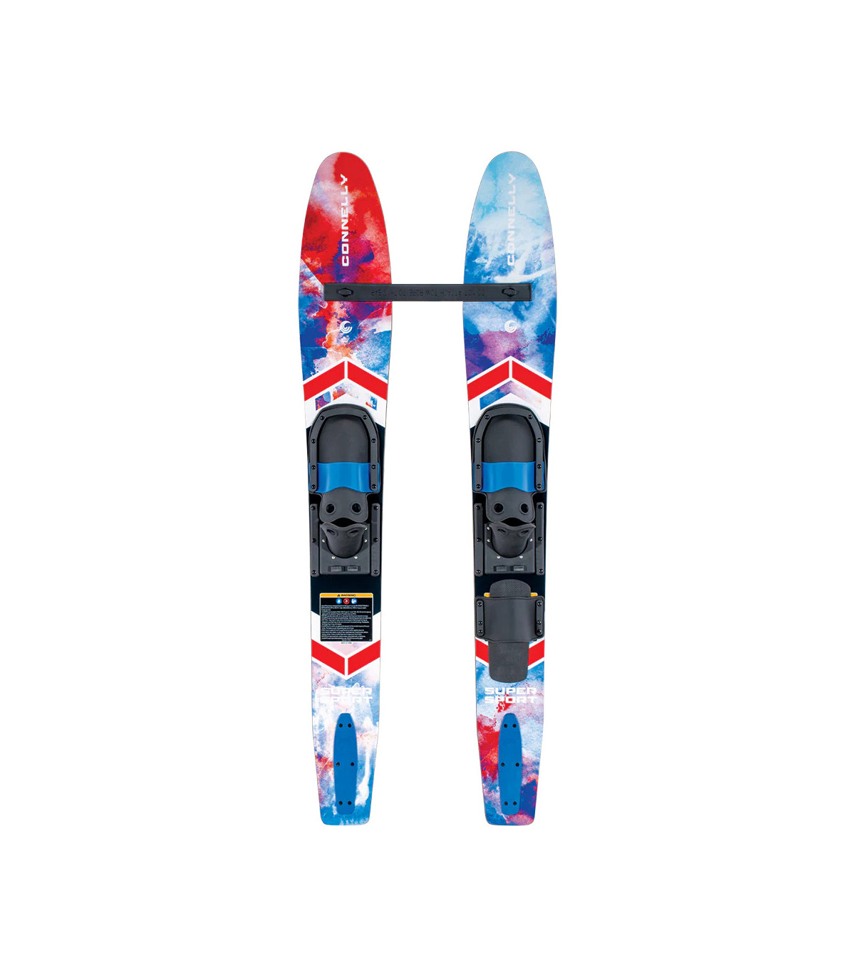 Build confidence in smaller, lighter riders with properly sized gear that offers a more enjoyable ride. The Super Sport features our shaped ski concept with wide tip and tail for easier deep water starts. Beginners can also use the included front stabilizer bar to keep the skis in line and the proper distance apart. Remove the bar once they learn the basics to utilize the full performance of the skis.