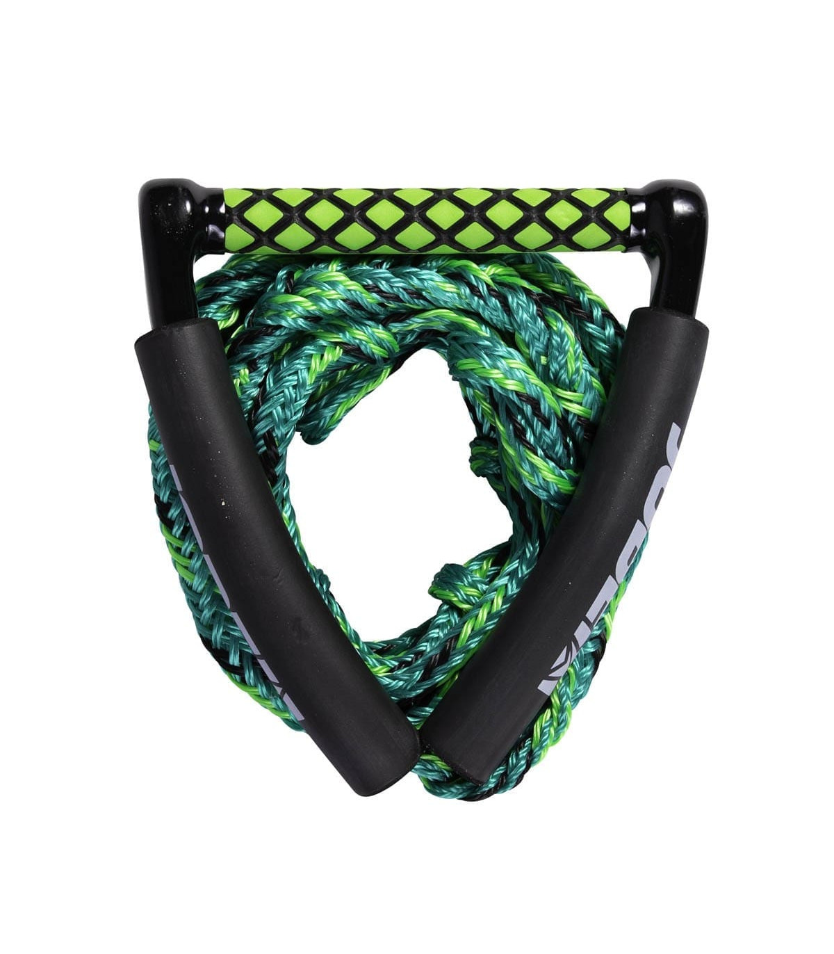 This wake surf rope's weave is thicker than the mainline, so you can hold on tight. With comfy EVA grip - a lightweight, soft and smooth handle -, detachable sections, a 10'' inch (25,4cm) handle and 2 floats this is a real boss on the wake.